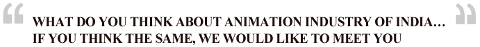 What do you think about animation industry of India…If you think the same, we would like to meet you Our vision is to take animation industry at its peak in India. To give Indian animation industry and movies international exposure our main objective is to co ordinate with Hollywood also. In the same direction moving forward, we have taken to the heart the demand of global audiences and we believe with such projects only we can bring Indian animation industry on world platform before long. |