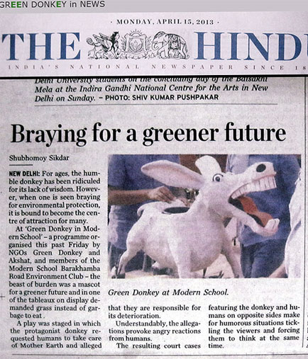 At 'Green Donkey in Modern School' -a programme organised this past Friday by NGOs Green Donkey and Akshat and members of the Modern School Barakhamba Road Environment Club - the beast of burden was a mascot for a greener future and in one of the tableaux on display demanded grass instead of garbage to eat.